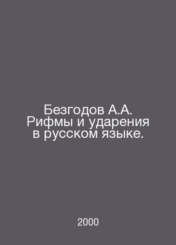 Bezgodov A.A. Rhymes and accents in Russian. In Russian /Bezgodov A.A. Rifmy i udareniya v russkom yazyke. Kaliningrad: The Amber Tale of 2000. We have thousands of titles and often several copies of each title may be available. Please feel free to contact us for a detailed description of the copies available. SKUalbe5503dcb61f78c3a.