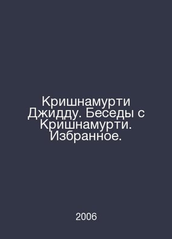 Krishnamurti Jeddah. Conversations with Krishnamurti In Russian /Krishnamurti Dzhiddu. Besedy s Krishnamurti. Izbrannoe. Ostov-On-Don: Phoenix, 2006. Contact us for details or to request photos of available books. Delivery of this book could take longer than normal due to additional handling time before shipping, and no rush delivery options are available. Please let us know if you have a specific date by which you need to receive your order. SKUalb74308ce2495443ca