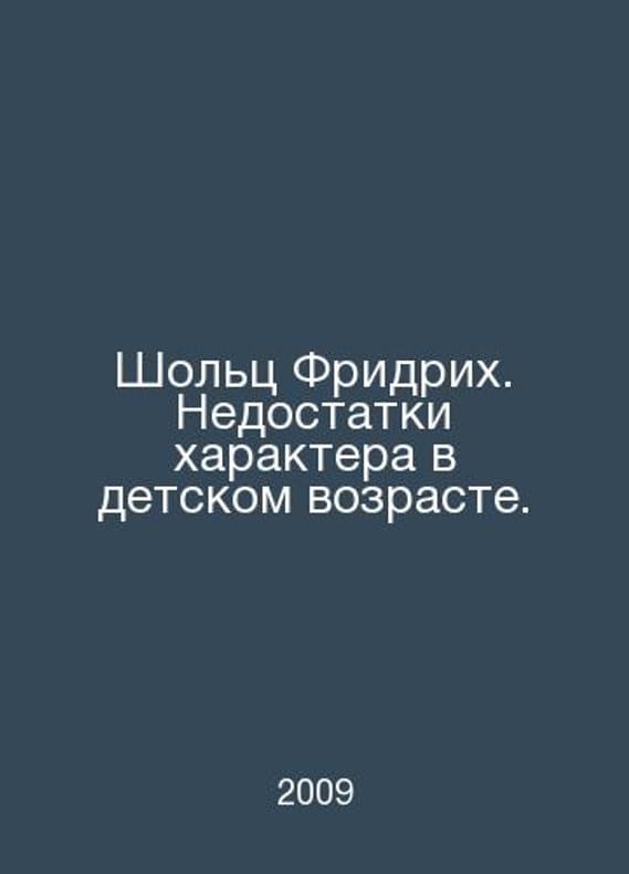 Scholz Friedrich. Deficiencies of character in childhood. In Russian /Sholts Fridrikh. Nedostatki kharaktera v detskom vozraste. A Guide to Raising a Family and at School. Series: Family Education. Translation from the 3rd volume. Tupere Editions, edited by L. Orshansky. Moscow: Eksmo. 2009.Contact us for details or to request photos of available books. Delivery of this book could take longer than normal due to additional handling time before shipping, and no rush delivery options are available. Please let us know if you have a specific date by which you need to receive your order.SKUalb7433d45f1a49853b