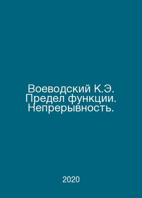 Voivodsky K.E. The Limit of Function. Continuity. In Russian /Voevodskiy K.E. Predel funktsii. Nepreryvnost. Developed for the Academic Gymnasium named after D. K. Faddeev St. Petersburg State University. St. Petersburg State University. 2020.Contact us for details or to request photos of available books. Delivery of this book could take longer than normal due to additional handling time before shipping, and no rush delivery options are available. Please let us know if you have a specific date by which you need to receive your order.SKUalb74d210b3763a0e92