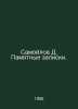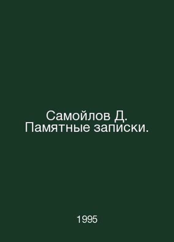 Samoilov D. Memoranda. In Russian /Samoylov D. Pamyatnye zapiski. M International Relations. 1995.Contact us for details or to request photos of available books. Delivery of this book could take longer than normal due to additional handling time before shipping, and no rush delivery options are available. Please let us know if you have a specific date by which you need to receive your order.SKUalb76998fb389ea8aa0