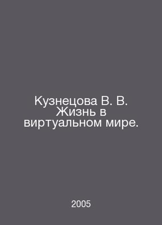 Kuznetsova V. V. Life in the Virtual World. In Russian /Kuznetsova V. V. Zhizn v virtualnom mire. Matrix-M 2005. Contact us for details or to request photos of available books. Delivery of this book could take longer than normal due to additional handling time before shipping, and no rush delivery options are available. Please let us know if you have a specific date by which you need to receive your order. SKUalb76c90e582feda914
