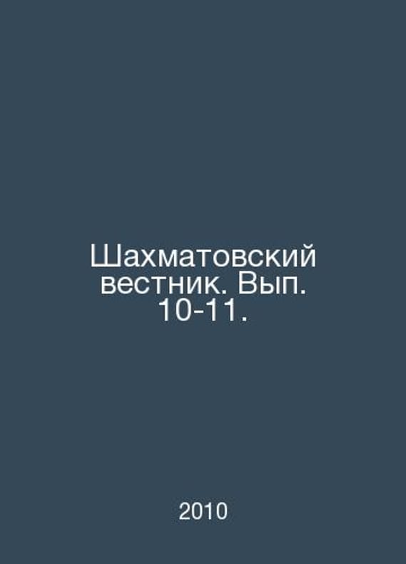 Chess Vestnik. Volume 10-11. In Russian /Shakhmatovskiy vestnik. Vyp. 10-11. M. Science 2010. Contact us for details or to request photos of available books. Delivery of this book could take longer than normal due to additional handling time before shipping, and no rush delivery options are available. Please let us know if you have a specific date by which you need to receive your order. SKUalb76da37dacb9a3867