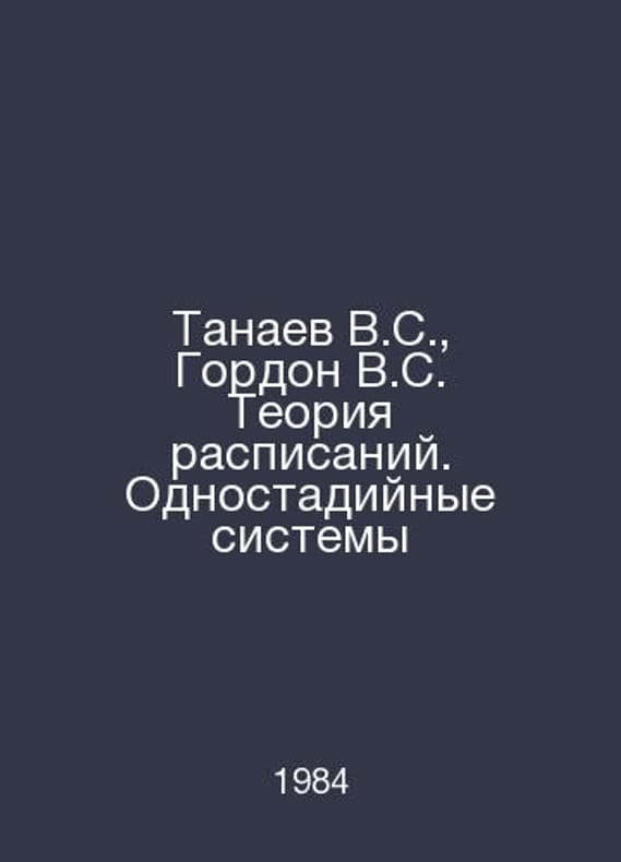Tanaev V.S., Gordon V.S. Timetable Theory. Single-stage Systems In Russian /Tanaev V.S., Gordon V.S. Teoriya raspisaniy. Odnostadiynye sistemy Economics and Mathematics Library 1984.Contact us for details or to request photos of available books. Delivery of this book could take longer than normal due to additional handling time before shipping, and no rush delivery options are available. Please let us know if you have a specific date by which you need to receive your order.SKUalb77449d57a6bced0f