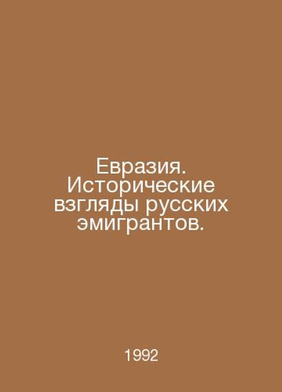 Eurasia. Historical views of Russian emigrants. In Russian /Evraziya. Istoricheskie vzglyady russkikh emigrantov. M. GRVL. Science. 1992.Contact us for details or to request photos of available books. Delivery of this book could take longer than normal due to additional handling time before shipping, and no rush delivery options are available. Please let us know if you have a specific date by which you need to receive your order.SKUalb7745b84ea0edb030