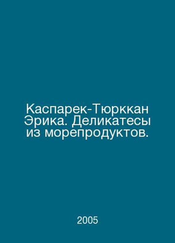 Erica Kasparak-Turkkan. Seafood delicacies. In Russian /Kasparek-Tyurkkan Erika. Delikatesy iz moreproduktov. Series: M Nyolas Family Cooking for the 21st Century 2005.. Contact us for details or to request photos of available books. SKUalb780fc3d086ff4008.