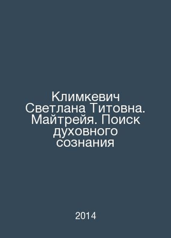 Klimkevich Svetlana Titovna. Maitreya. Search for Spiritual Consciousness In Russian /Klimkevich Svetlana Titovna. Maytreyya. Poisk dukhovnogo soznaniya M.: Veligor 2014. Contact us for details or to request photos of available books. Delivery of this book could take longer than normal due to additional handling time before shipping, and no rush delivery options are available. Please let us know if you have a specific date by which you need to receive your order. SKUalb787807ee2ab9b9a9