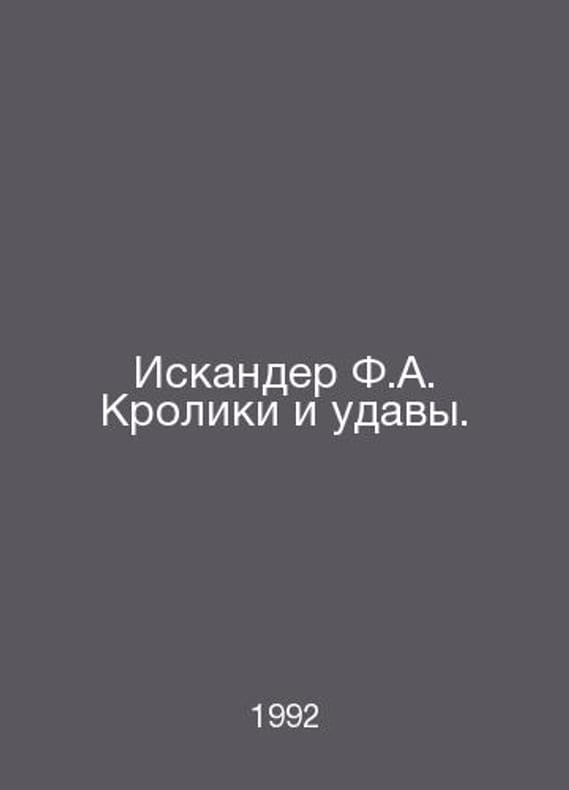 Iskander F.A. Rabbits and Pants. In Russian /Iskander F.A. Kroliki i udavy. Tales, Ser. Alpha fiction. M Text 1992.Contact us for details or to request photos of available books. Delivery of this book could take longer than normal due to additional handling time before shipping, and no rush delivery options are available. Please let us know if you have a specific date by which you need to receive your order.SKUalb787b52ceabdef309