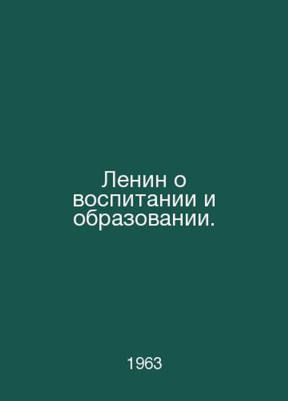 Lenin on upbringing and education. In Russian /Lenin o vospitanii i obrazovanii. M Enlightenment 1963.Contact us for details or to request photos of available books. Delivery of this book could take longer than normal due to additional handling time before shipping, and no rush delivery options are available. Please let us know if you have a specific date by which you need to receive your order.SKUalb7897a9f2c5565e1c