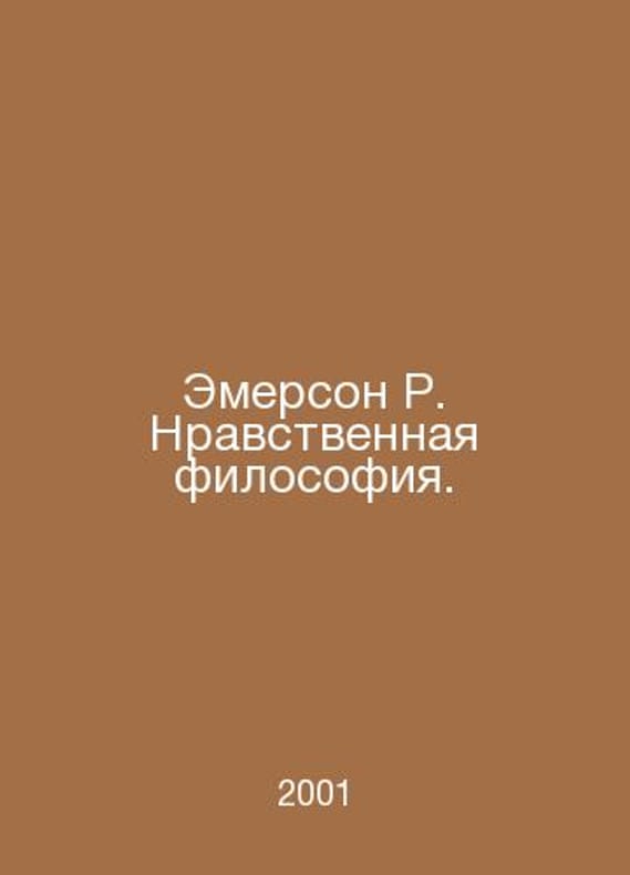 Emerson R. Moral philosophy. In Russian /Emerson R. Nravstvennaya filosofiya. Classical philosophical thought. M. AST. 2001.Contact us for details or to request photos of available books. Delivery of this book could take longer than normal due to additional handling time before shipping, and no rush delivery options are available. Please let us know if you have a specific date by which you need to receive your order.SKUalb78a4b2dab9c8781f