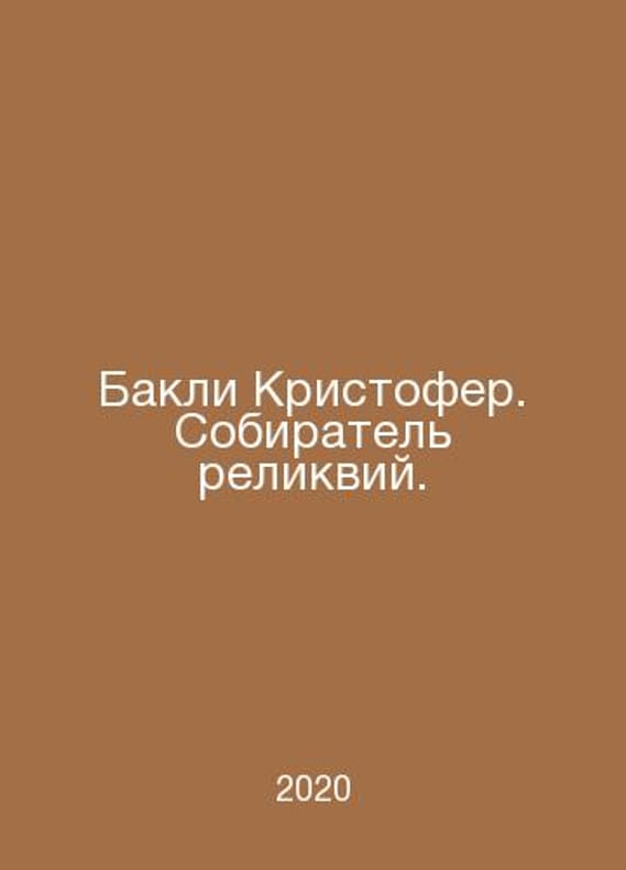 Buckley Christopher. A relic collector. In Russian /Bakli Kristofer. Sobiratel relikviy. Series: A Big Novel. M. Foreigner, ABC-Atticus. 2020.Contact us for details or to request photos of available books. Delivery of this book could take longer than normal due to additional handling time before shipping, and no rush delivery options are available. Please let us know if you have a specific date by which you need to receive your order.SKUalb78cd74de4ed52a4c