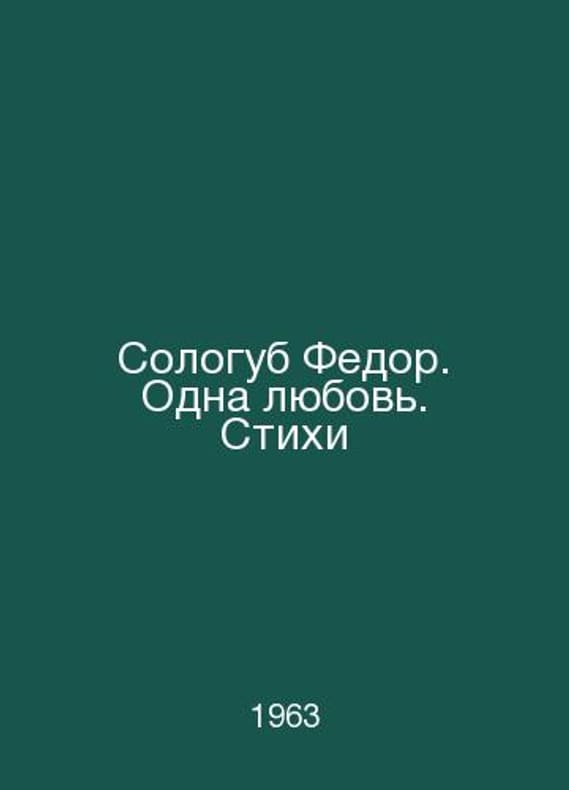 Sologub Fedor. One Love. Poems In Russian /Sologub Fedor. Odna lyubov. Stikhi Washington W. Kamkin 1963.Contact us for details or to request photos of available books. Delivery of this book could take longer than normal due to additional handling time before shipping, and no rush delivery options are available. Please let us know if you have a specific date by which you need to receive your order.SKUalb791c86fa9881bac4