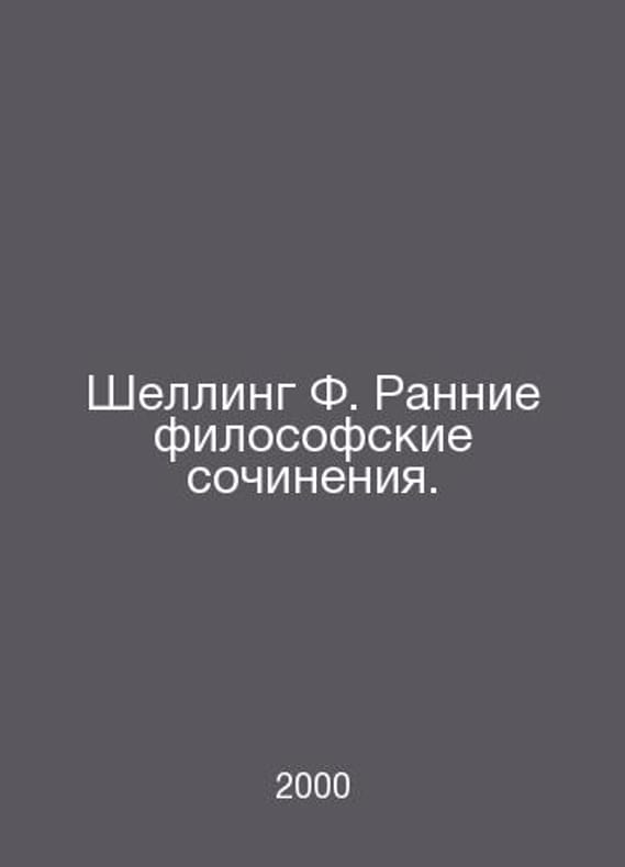 Schelling F. Early Philosophical Works. In Russian /Shelling F. Rannie filosofskie sochineniya. St. Petersburg Alleteya 2000.Contact us for details or to request photos of available books. Delivery of this book could take longer than normal due to additional handling time before shipping, and no rush delivery options are available. Please let us know if you have a specific date by which you need to receive your order.SKUalb7948a2ed5fa0964e