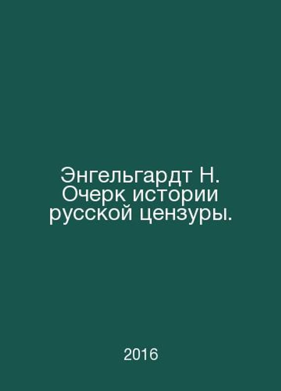 Engelhardt N. Essay on the History of Russian Censorship. In Russian /Engelgardt N. Ocherk istorii russkoy tsenzury. St. Petersburg Bibliopolis 2016. Contact us for details or to request photos of available books. Delivery of this book could take longer than normal due to additional handling time before shipping, and no rush delivery options are available. Please let us know if you have a specific date by which you need to receive your order. SKUalb7989d4faf6708d9d