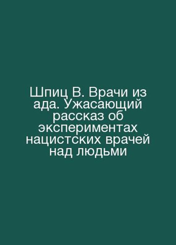 Spitz W. Doctors from Hell: The Horrifying Story of Nazi Doctors Experiments on People In Russian /Shpits V. Vrachi iz ada. Uzhasayushchiy rasskaz ob eksperimentakh natsistskikh vrachey nad lyudmi M. Eksmo 2023. 496s.Contact us for details or to request photos of available books. Delivery of this book could take longer than normal due to additional handling time before shipping, and no rush delivery options are available. Please let us know if you have a specific date by which you need to receive your order.SKUalb79ca54659997d55f