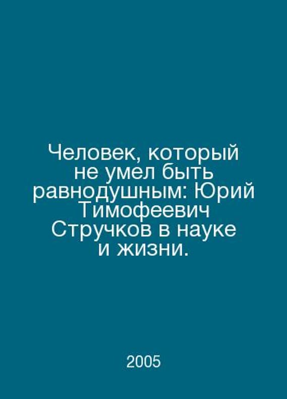 A man who could not be indifferent: Yuri Timofeevich Struchkov in science and life. In Russian /Chelovek, kotoryy ne umel byt ravnodushnym: Yuriy Timofeevich Struchkov v nauke i zhizni. M. 2005. Contact us for details or to request photos of available books. Delivery of this book could take longer than normal due to additional handling time before shipping, and no rush delivery options are available. Please let us know if you have a specific date by which you need to receive your order.SKUalb7a4b4af92ea1bf01