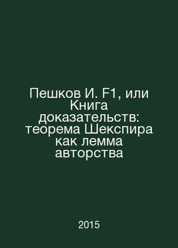 Peshkov I. F1 or the Book of Evidence: Shakespeares Theorem as an Authorship Lemma In Russian /Peshkov I. F1, ili Kniga dokazatelstv: teorema Shekspira kak lemma avtorstva The series: Paradoxes and Evidence of the M. Ripoll Classic 2015. Contact us for details or to request photos of available books. Delivery of this book could take longer than normal due to additional handling time before shipping, and no rush delivery options are available. Please let us know if you have a specific date by which you need to receive your order. SKUalb7b84bbb987a4ae37