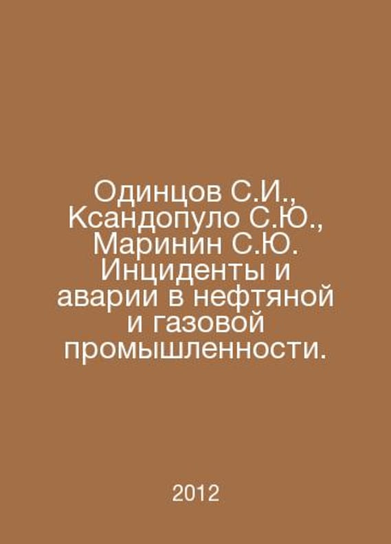 Odintsov S.I., Xandopolo S.Yu., Marinin S.Yu. Incidents and accidents in the oil and gas industry. In Russian /Odintsov S.I., Ksandopulo S.Yu., Marinin S.Yu. Intsidenty i avarii v neftyanoy i gazovoy promyshlennosti. Teaching manual. Krasnodar. Publishing House of KubSTU. 2012. Contact us for details or to request photos of available books. Delivery of this book could take longer than normal due to additional handling time before shipping, and no rush delivery options are available. Please let us know if you have a specific date by which you need to receive your order.SKUalb7bc7272019365c5c