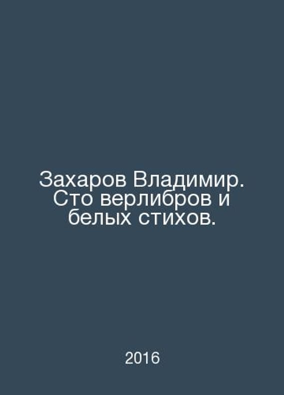 Vladimir Zakharov. One hundred verses and white verses. In Russian /Zakharov Vladimir. Sto verlibrov i belykh stikhov. M. OGI. 2016.Contact us for details or to request photos of available books. Delivery of this book could take longer than normal due to additional handling time before shipping, and no rush delivery options are available. Please let us know if you have a specific date by which you need to receive your order.SKUalb7bd0153b2603a1fc