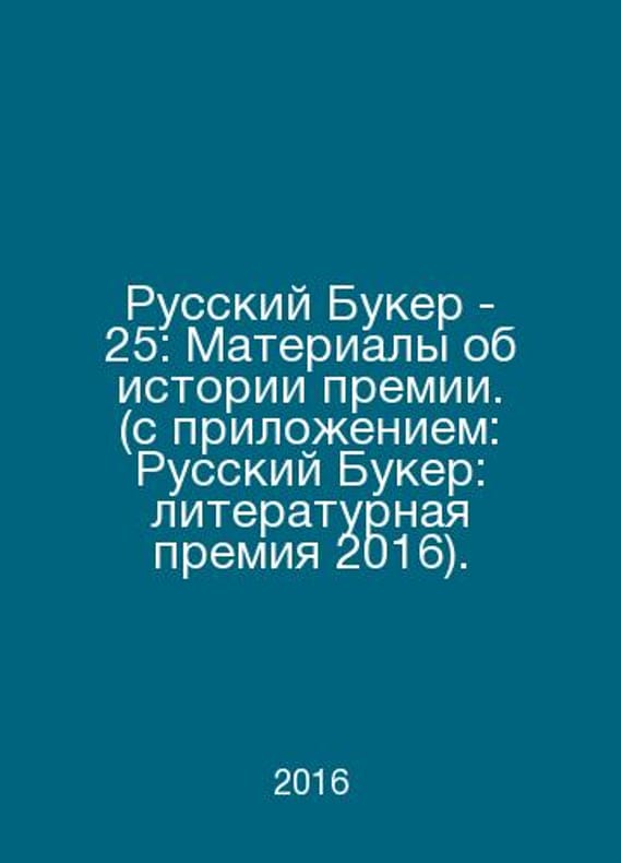 Russian Booker - 25: Materials on the history of the prize. (with attachment: Russian Booker: Literary Prize 2016). In Russian /Russkiy Buker - 25: Materialy ob istorii premii. (s prilozheniem: Russkiy Buker: literaturnaya premiya 2016). I. Shaytanov, editor M.: Boslin, 2016. Contact us for details or to request photos of available books. Delivery of this book could take longer than normal due to additional handling time before shipping, and no rush delivery options are available. Please let us know if you have a specific date by which you need to receive your order. SKUalb7cbf753c00ca0e71