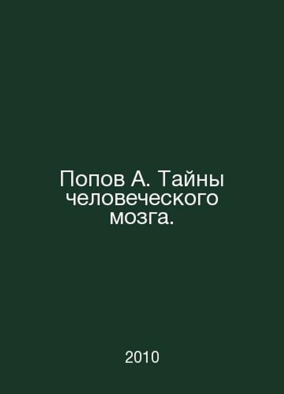 Popov A. The Mysteries of the Human Brain. In Russian /Popov A. Tayny chelovecheskogo mozga. Series: All Mysteries of the Earth Moscow ACT 2010. Contact us for details or to request photos of available books. Delivery of this book could take longer than normal due to additional handling time before shipping, and no rush delivery options are available. Please let us know if you have a specific date by which you need to receive your order. SKUalb7dc00723901c7453