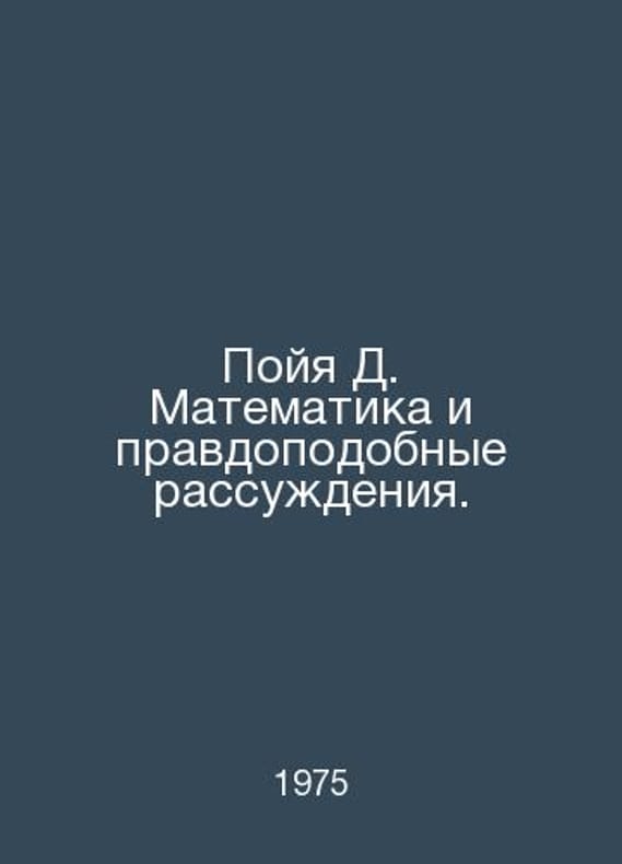 Poya D. Mathematics and plausible reasoning. In Russian /Poyya D. Matematika i pravdopodobnye rassuzhdeniya. M. Nauka. 1975.Contact us for details or to request photos of available books. Delivery of this book could take longer than normal due to additional handling time before shipping, and no rush delivery options are available. Please let us know if you have a specific date by which you need to receive your order.SKUalb7e57c9b731eb39bb