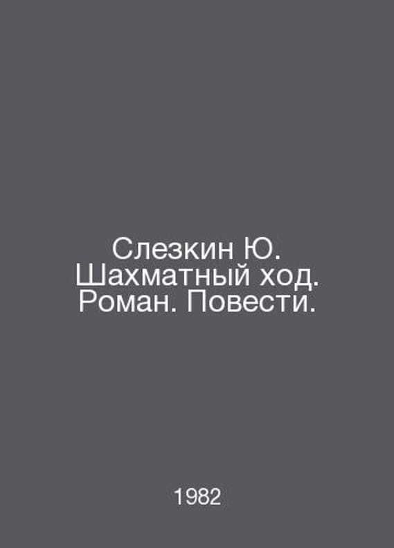 Slezkin Yu. Chess move. Roman. Novel. In Russian /Slezkin Yu. Shakhmatnyy khod. Roman. Povesti. Table Mountain, Tales: Chess Move, Different Eyes, The Goat in the Garden, Fire Point.Contact us for details or to request photos of available books. Delivery of this book could take longer than normal due to additional handling time before shipping, and no rush delivery options are available. Please let us know if you have a specific date by which you need to receive your order.SKUalb7f08b11c56dc670d