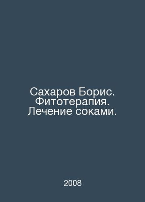 Sakharov Boris. Phytotherapy. Juice treatment. In Russian /Sakharov Boris. Fitoterapiya. Lechenie sokami. M., Profit-Style. 2008. Contact us for details or to request photos of available books. Delivery of this book could take longer than normal due to additional handling time before shipping, and no rush delivery options are available. Please let us know if you have a specific date by which you need to receive your order.SKUalb8090296e12f1a26c