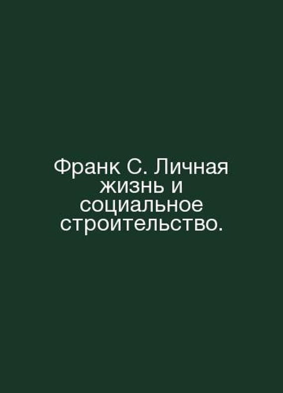 Frank S. Privacy and Social Construction. In Russian /Frank S. Lichnaya zhizn i sotsialnoe stroitelstvo. Christianity on the Godless Front. Paris. YMCA Press. 1920s-1930s.Contact us for details or to request photos of available books. Delivery of this book could take longer than normal due to additional handling time before shipping, and no rush delivery options are available. Please let us know if you have a specific date by which you need to receive your order.SKUalb8138ade5d3a1cb73
