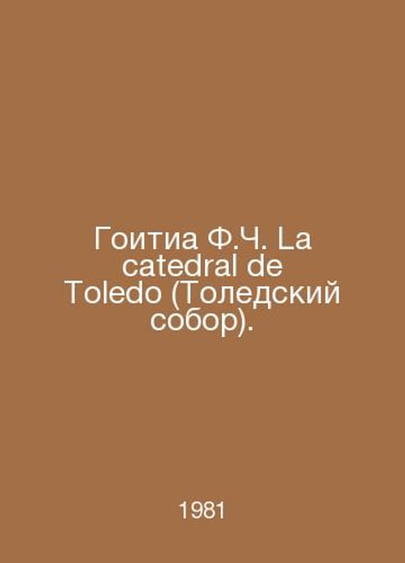 Goitia F.C. La catedral de Toledo. In Russian /Goitia F.Ch. La catedral de Toledo (Toledskiy sobor). Series: Iberica. Book in Spanish. Leon. Everest. 1981. Contact us for details or to request photos of available books. Delivery of this book could take longer than normal due to additional handling time before shipping, and no rush delivery options are available. Please let us know if you have a specific date by which you need to receive your order.SKUalb81f27ccf7ddf4ca1