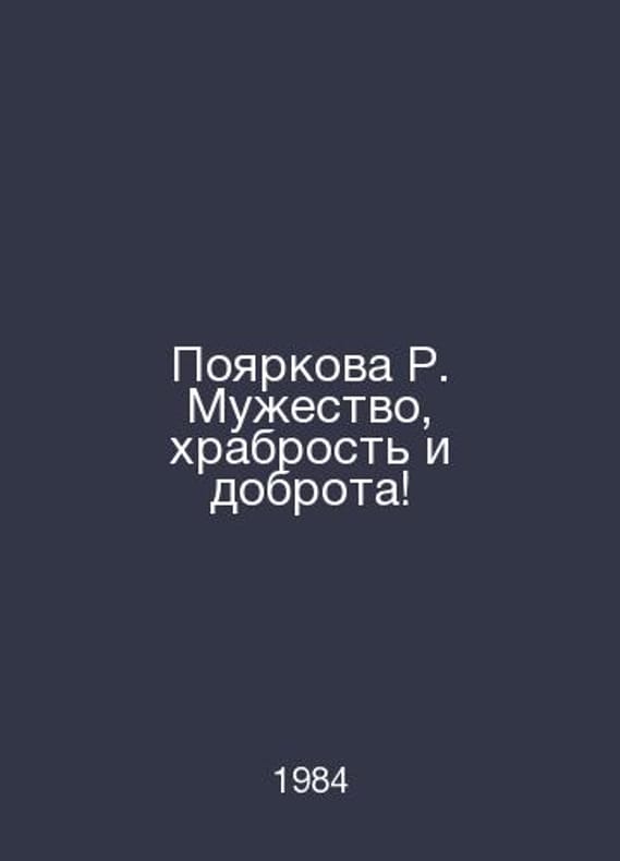 Poyarkova R. Courage, courage, and kindness In Russian /Poyarkova R. Muzhestvo, khrabrost i dobrota M Knowledge 1984.Contact us for details or to request photos of available books. Delivery of this book could take longer than normal due to additional handling time before shipping, and no rush delivery options are available. Please let us know if you have a specific date by which you need to receive your order.SKUalb828a9d702f5da395