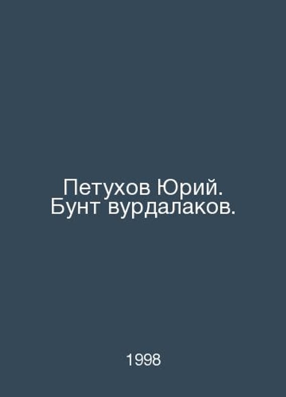 Yuri Petukhov. Vurdalakov revolt. In Russian /Petukhov Yuriy. Bunt vurdalakov. Series: The Thought Empire of M. Meta-galaxy 1998. Contact us for details or to request photos of available books. Delivery of this book could take longer than normal due to additional handling time before shipping, and no rush delivery options are available. Please let us know if you have a specific date by which you need to receive your order.SKUalb829d832d34adebca