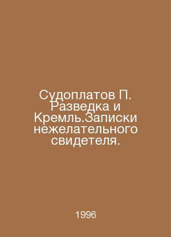 Sudoplatov Intelligence and the Kremlin. The notes of an unwanted witness. In Russian /Sudoplatov Razvedka i Kreml.Zapiski nezhelatelnogo svidetelya. A series of declassified lives. M. Gay. 1996.Contact us for details or to request photos of available books. Delivery of this book could take longer than normal due to additional handling time before shipping, and no rush delivery options are available. Please let us know if you have a specific date by which you need to receive your order.SKUalb82bd7733887119e2