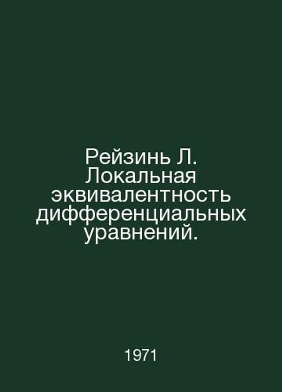 Reisin L. Local equivalence of differential equations. In Russian /Reyzin L. Lokalnaya ekvivalentnost differentsialnykh uravneniy. Riga Zinatne 1971.Contact us for details or to request photos of available books. Delivery of this book could take longer than normal due to additional handling time before shipping, and no rush delivery options are available. Please let us know if you have a specific date by which you need to receive your order.SKUalb82def79f307c3911
