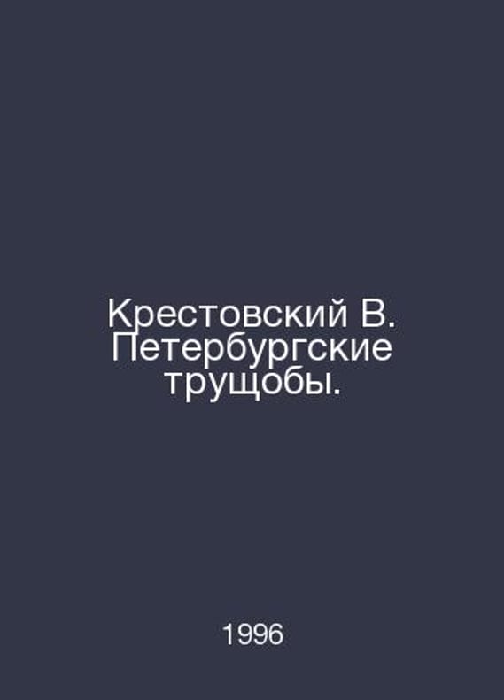 Krestovsky V. The St. Petersburg Slums. In Russian /Krestovskiy V. Peterburgskie trushchoby. Petrozavodsk 1994. Contact us for details or to request photos of available books. Delivery of this book could take longer than normal due to additional handling time before shipping, and no rush delivery options are available. Please let us know if you have a specific date by which you need to receive your order.SKUalb93d7a9a4dc5ebd97