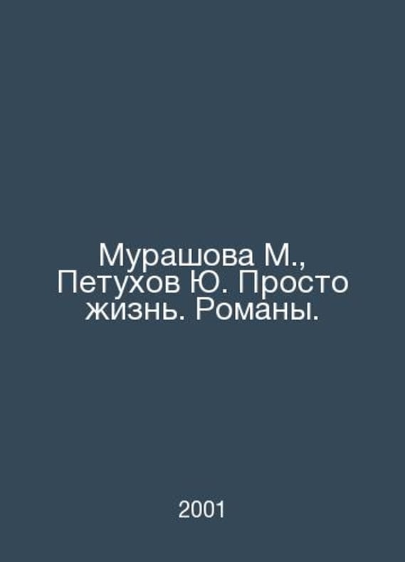 Murashova M., Petukhov Yu. Simple Life. Novels. In Russian /Murashova M., Petukhov Yu. Prosto zhizn. Romany. History. 4 Moscow Metaggalaxy 2001.Contact us for details or to request photos of available books. Delivery of this book could take longer than normal due to additional handling time before shipping, and no rush delivery options are available. Please let us know if you have a specific date by which you need to receive your order.SKUalb836654bcf31efab0