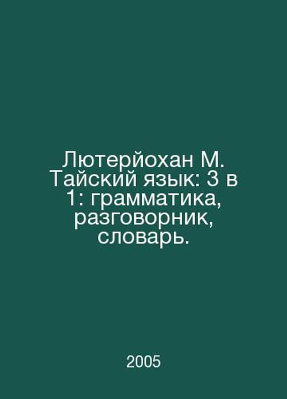 Luterjohan M. Thai: 3 in 1: grammar, vocabulary, vocabulary. In Russian /Lyuteryokhan M. Tayskiy yazyk: 3 v 1: grammatika, razgovornik, slovar. M. AST-Astrel 2005.. Contact us for details or to request photos of available books. SKUalb846a4535e0a619f8.