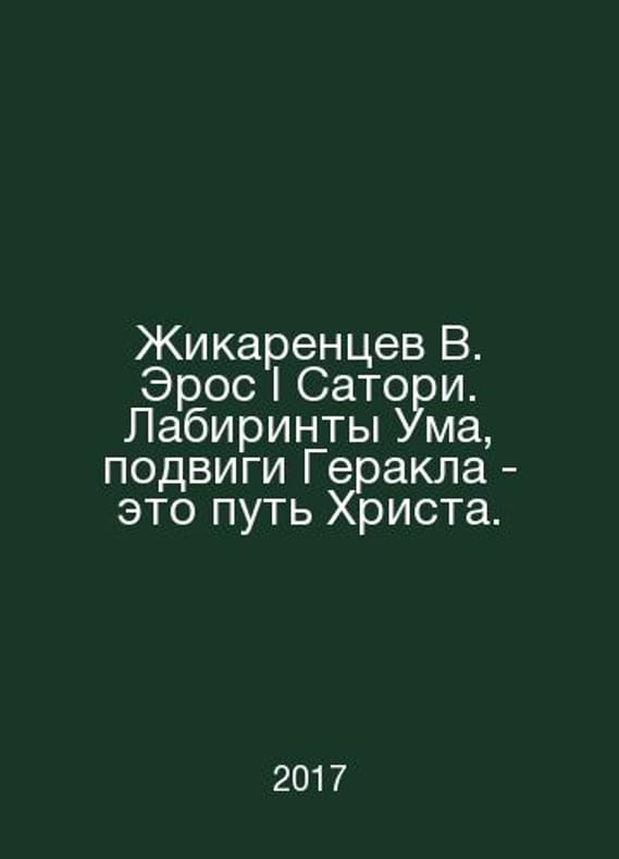 Zhikarentsev V. Eros I Satori. The labyrinths of the mind, the feats of Hercules, are the way of Christ. In Russian /Zhikarentsev V. Eros I Satori. Labirinty Uma, podvigi Gerakla - eto put Khrista. Sat 2017. Contact us for details or to request photos of available books. Delivery of this book could take longer than normal due to additional handling time before shipping, and no rush delivery options are available. Please let us know if you have a specific date by which you need to receive your order. SKUalb8550008063febaf0