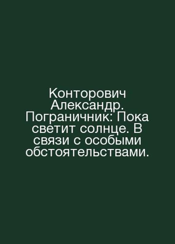 Aleksandr Kontorovich. Border guard: While the sun is shining. Due to special circumstances. In Russian /Kontorovich Aleksandr. Pogranichnik: Poka svetit solntse. V svyazi s osobymi obstoyatelstvami. Series: The Collection. War fiction. Moscow, AST, Leningrad. 2021. 640s. Contact us for details or to request photos of available books. Delivery of this book could take longer than normal due to additional handling time before shipping, and no rush delivery options are available. Please let us know if you have a specific date by which you need to receive your order.SKUalb874a83aeba7699b3