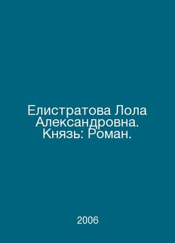 Elistratova Lola Alexandrovna. Prince: Roman. In Russian /Elistratova Lola Aleksandrovna. Knyaz: Roman. Series: Dangerous Links. M Time 2006.Contact us for details or to request photos of available books. Delivery of this book could take longer than normal due to additional handling time before shipping, and no rush delivery options are available. Please let us know if you have a specific date by which you need to receive your order.SKUalb87580c046fd1a2b5