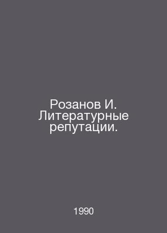 Rozanov I. Literary Reputations. In Russian /Rozanov I. Literaturnye reputatsii. Works of different years M Soviet writer 1990. Contact us for details or to request photos of available books. Delivery of this book could take longer than normal due to additional handling time before shipping, and no rush delivery options are available. Please let us know if you have a specific date by which you need to receive your order. SKUalb878c3969118841d7