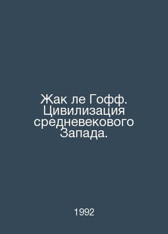Jacques le Goff: The Civilization of the Medieval West. In Russian /Zhak le Goff. Tsivilizatsiya srednevekovogo Zapada. M.: Progress. 1992. Contact us for details or to request photos of available books. Delivery of this book could take longer than normal due to additional handling time before shipping, and no rush delivery options are available. Please let us know if you have a specific date by which you need to receive your order. SKUalb87eac2f286f65da9