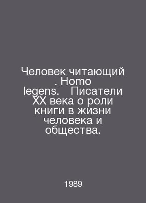 The Reader. Homo legens. Writers of the twentieth century on the role of books in human life and society. In Russian /Chelovek chitayushchiy . Homo legens.†Pisateli XX veka o roli knigi v zhizni cheloveka i obshchestva. Belza S.I. M. Progress. 1989.. Contact us for details or to request photos of available books. SKUalb88d4883c3b84f7b0.