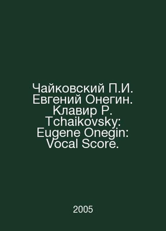 Tchaikovsky g. Evgeny Onegin. Klavir Tchaikovsky: Eugene Onegin: Vocal Score. In Russian /Chaykovskiy g. Evgeniy Onegin. Klavir Tchaikovsky: Eugene Onegin: Vocal Score. M. Muzyka. 2005. Contact us for details or to request photos of available books. Delivery of this book could take longer than normal due to additional handling time before shipping, and no rush delivery options are available. Please let us know if you have a specific date by which you need to receive your order.SKUalb891bb580d082549b