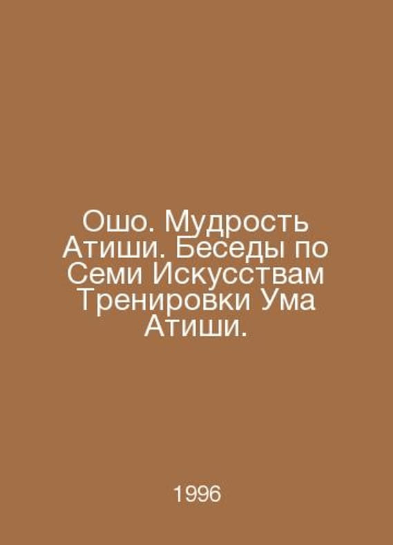 Osho. The Wisdom of Atisha. Conversations on the Seven Arts of Uma Atisha Training. In Russian /Osho. Mudrost Atishi. Besedy po Semi Iskusstvam Trenirovki Uma Atishi. M. Nirvana. 1996. Contact us for details or to request photos of available books. Delivery of this book could take longer than normal due to additional handling time before shipping, and no rush delivery options are available. Please let us know if you have a specific date by which you need to receive your order. SKUalb8a2999e15cea7c0f