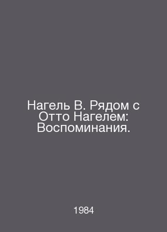 Nagel W. Next to Otto Nagel: Memories. In Russian /Nagel V. Ryadom s Otto Nagelem: Vospominaniya. M Sov.Russia 1984.Contact us for details or to request photos of available books. Delivery of this book could take longer than normal due to additional handling time before shipping, and no rush delivery options are available. Please let us know if you have a specific date by which you need to receive your order.SKUalb8a6d6010fbec19dd