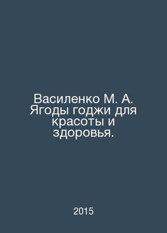 Vasilenko M. A. Goji berries for beauty and health. In Russian /Vasilenko M. A. Yagody godzhi dlya krasoty i zdorovya. Rostov-on-Don Phoenix 2015. Contact us for details or to request photos of available books. Delivery of this book could take longer than normal due to additional handling time before shipping, and no rush delivery options are available. Please let us know if you have a specific date by which you need to receive your order. SKUalb8b160b91b480e217