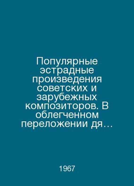 Popular pop works by Soviet and foreign composers. In a light arrangement of the piano. Issue 12. In Russian /Populyarnye estradnye proizvedeniya sovetskikh i zarubezhnykh kompozitorov. V oblegchennom perelozhenii dya fortepiano. Vypusk 12. Compiled by A. Kachalina. Moscow. Music. 1967. Contact us for details or to request photos of available books. Delivery of this book could take longer than normal due to additional handling time before shipping, and no rush delivery options are available. Please let us know if you have a specific date by which you need to receive your order.SKUalb8b3c37682873f0aa