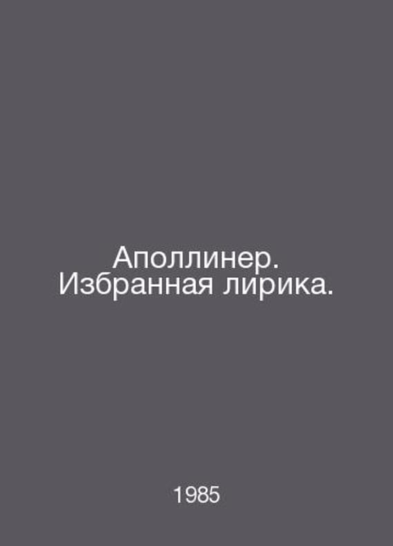 Apollinaire. Selected lyrics. In Russian /Apolliner. Izbrannaya lirika. Introductory article, compilation by S.I.Velikovsky. Comments by Y.A.Ginzburg. Editing by M.N.Waxman. Artist G.M.Bernstein. Contact us for details or to request photos of available books. Delivery of this book could take longer than normal due to additional handling time before shipping, and no rush delivery options are available. Please let us know if you have a specific date by which you need to receive your order.SKUalb8bedc077bff9ef61