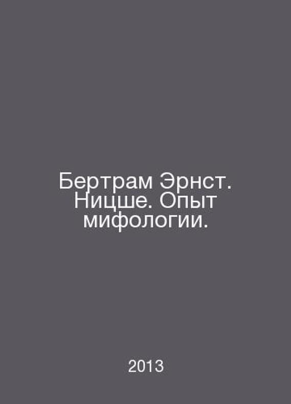 Bertram Ernst. Nietzsche. Experience of mythology. In Russian /Bertram Ernst. Nitsshe. Opyt mifologii. Translated from German by A. Shurbelev. St. Petersburg Vladimir Dal 2013. Contact us for details or to request photos of available books. Delivery of this book could take longer than normal due to additional handling time before shipping, and no rush delivery options are available. Please let us know if you have a specific date by which you need to receive your order.SKUalb8c8178c2fb543ecc